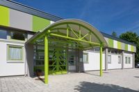 Der Zugang zum Kindergarten ist barrierefrei möglich, das heißt es sind keine Stufen oder Schwellen über 3 cm auf dem Weg zum Eingang und in das Gebäude vorhanden.
