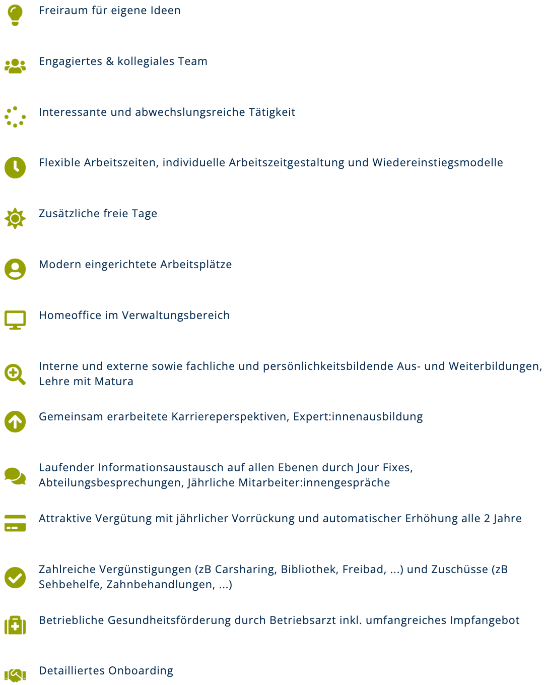 Um eine ausgewogene (Work-)Life-Balance zu bieten, gibt es für unsere Mitarbeiter:innen, gemeinsam mit der Personalvertretung, umfangreiche Sozialleistungen und Goodies: